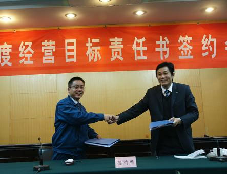 “百億企業(yè)”目標(biāo)有望今年實(shí)現(xiàn) 2009年12月30日,升華集團(tuán)2010年度經(jīng)營(yíng)目標(biāo)責(zé)任書(shū)簽約會(huì)議舉行,升華今年完成超百億的奮斗目標(biāo)被分解到各主要骨干企業(yè)。這也是升華歷年來(lái),年度目標(biāo)分解最早的一年。會(huì)上,董事長(zhǎng)夏士林分別與升華拜克、云峰新材、華源顏料、浙江輕紡、升華房產(chǎn)等集團(tuán)所屬一級(jí)子公司董事長(zhǎng)或總經(jīng)理簽署了新一年度的經(jīng)營(yíng)目標(biāo)責(zé)任書(shū)??偨?jīng)理吳夢(mèng)根主持會(huì)議,并就2010年度經(jīng)營(yíng)目標(biāo)作了指導(dǎo)性說(shuō)明。今年是升華集團(tuán)“三年超百億,五年上臺(tái)階”的壓軸之年,由于遭受突如其來(lái)的金融危機(jī)沖擊,給三年超百億奮斗目標(biāo)中帶來(lái)了較為嚴(yán)峻的考驗(yàn)。但是,升華人不畏艱險(xiǎn),敢于面對(duì),善于創(chuàng)新,齊心協(xié)力終于渡過(guò)了這一難關(guān),順利實(shí)現(xiàn)了逆勢(shì)增長(zhǎng),從而也為新一年度實(shí)現(xiàn)既定目標(biāo)夯實(shí)了基礎(chǔ)。在當(dāng)天的簽約儀式上,夏士林強(qiáng)調(diào)指出:我們看重資產(chǎn)回報(bào)率、看重經(jīng)營(yíng)利潤(rùn),但更在乎于技術(shù)創(chuàng)新等有助于企業(yè)可持續(xù)發(fā)展能力提升的分類(lèi)指標(biāo)的考核??梢哉f(shuō),注重分類(lèi)指標(biāo)的考核是升華實(shí)現(xiàn)“三年超百億,五年上臺(tái)階”目標(biāo),以及今后更長(zhǎng)時(shí)期持續(xù)平穩(wěn)發(fā)展的航標(biāo)。夏士林還指出:2009年是我們升華發(fā)展中最艱難的一年,也是最快的一年,從經(jīng)濟(jì)指標(biāo)而言也是取得成績(jī)較為顯著的一年。從生產(chǎn)經(jīng)營(yíng)情況來(lái)看,目標(biāo)考核,尤其是分類(lèi)指標(biāo)考核的效果是明顯的,充分體現(xiàn)了各子公司的創(chuàng)