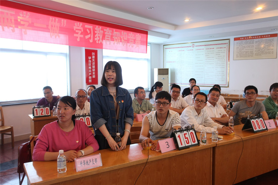 當(dāng)天的競(jìng)賽設(shè)置了50道題目。為了做到競(jìng)賽的公平、公正,競(jìng)賽之前所有參賽隊(duì)員的手機(jī)及隨身攜帶的其他資料一率收集起來(lái)由工作人員統(tǒng)一保管。賽程進(jìn)行到一半的時(shí)候,升華拜克黨總支第一代表隊(duì)與升華地產(chǎn)支部代表隊(duì)均獲得160分,打成平手。集團(tuán)行政支部代表隊(duì)緊追不舍,一度將比分反超,至50道題目全部答完,行政支部代表隊(duì)與升華拜克黨總支第一代表隊(duì)均得170分,難分伯仲。比賽不得不進(jìn)入加時(shí)賽。加時(shí)賽共有5道題,率先答對(duì)3道題目者勝出。關(guān)鍵時(shí)候還是要看功底。最終,升華拜克黨總支第一代表隊(duì)的3位隊(duì)員憑借扎實(shí)的基本功,以總分190分的優(yōu)異成績(jī)一舉奪冠。